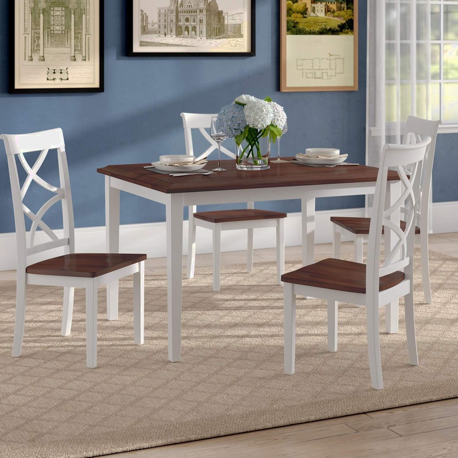 Including a corner bench, backless bench, and table, it offers space to seat five for casual morning meals and family dinners.